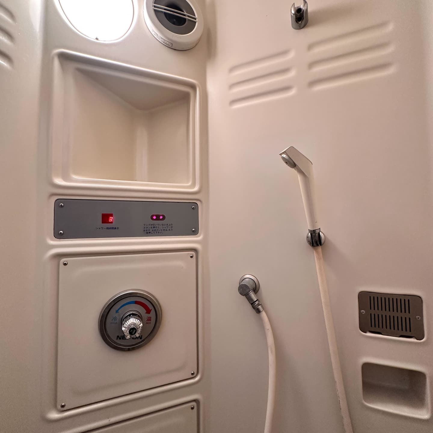 コイン式(有料)の温水シャワーです。24時間の利用ができます。
