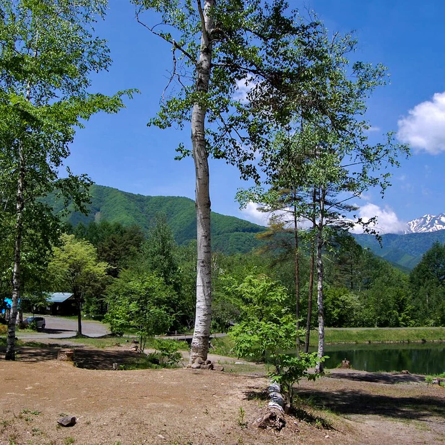 キャンプ場の中央、池の周辺に位置して乗鞍岳を望めるエリアです。管理棟や炊事場も近い人気のあるサイトです。空が広く見えますので、星空観察にもお勧めのサイトエリアです。