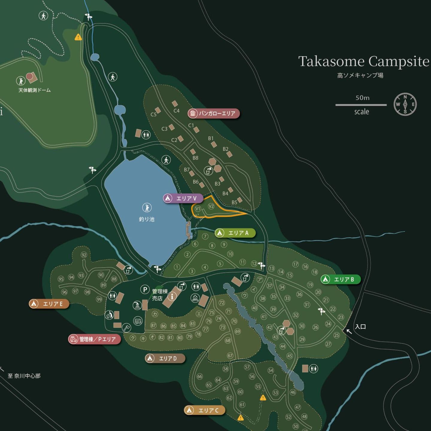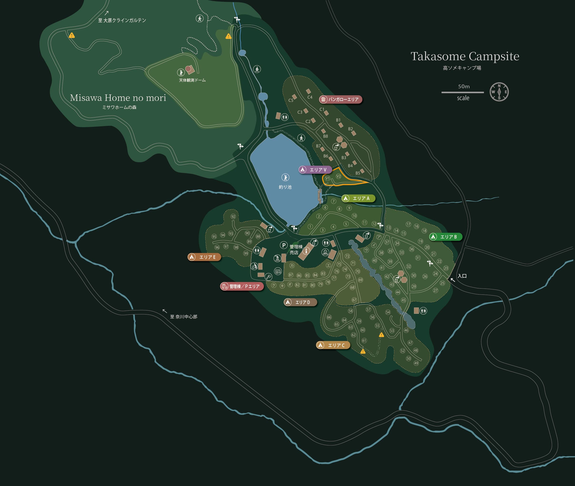 テントサイト・エリアV キャンプ場の中央に位置して、池越し正面に乗鞍岳が望める人気エリアです。テントサイトの中で唯一100V電源が付いた区画ですので、連泊でのご利用や電源が必要な方のキャンプ滞在にお勧めのエリアです。 前のページに戻る HOME | Venue_information | エリアV