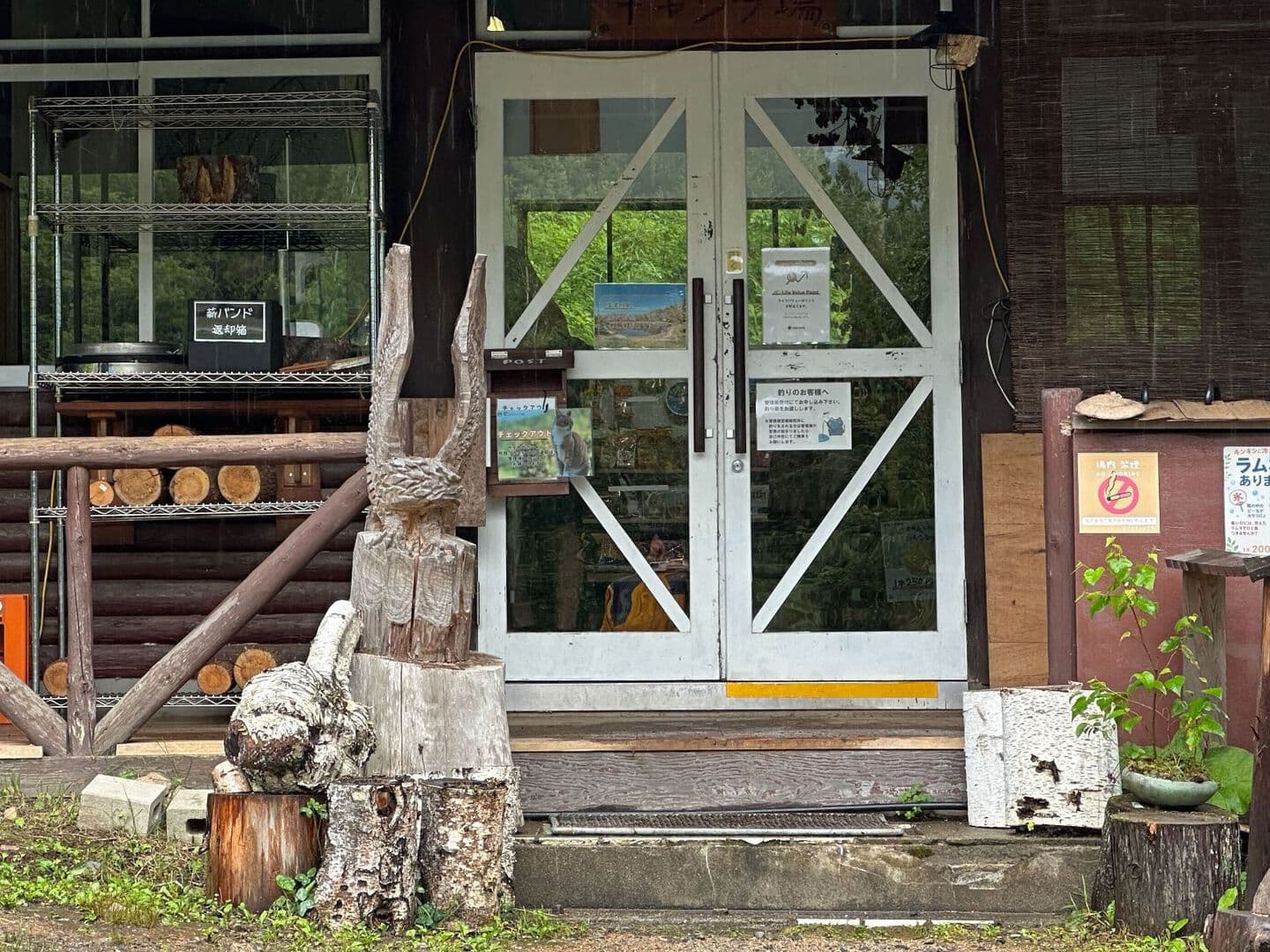 - 周辺には多くの野生動物が生息していますのでご注意ください。遊歩道を散策される際は「熊すず」の着用をして、キャンプ場外での単独行動はご遠慮ください。野生動物に食べ物を絶対に与えないでください。食材や生ゴミなどを外に放置すると臭いなどで動物が近寄ってくることがあります。食べ物の臭いが漏れないように密閉をしてください。
